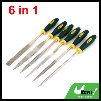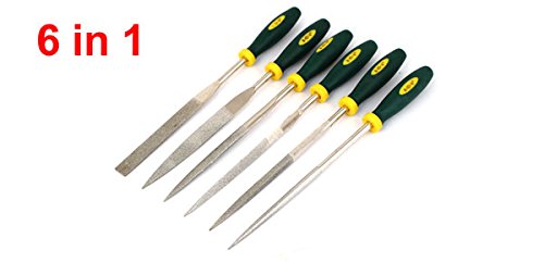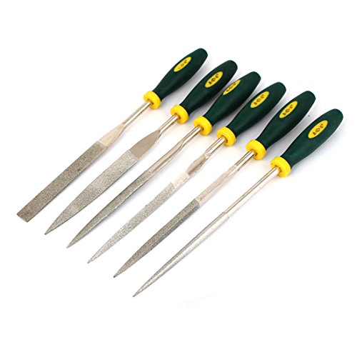 uxcell やすりセット ダイヤモンドファイル スクエア 三角 フラット グリーンプラスチックハンドル ラウンド 5mm x 180mm 6本入り
