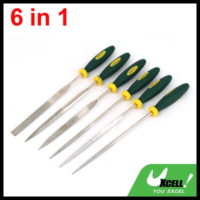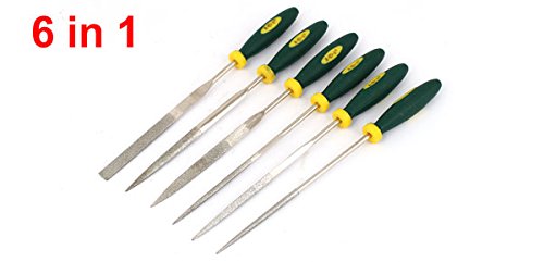 uxcell やすりセット ダイヤモンドファイル スクエア 三角 フラット プラスチックハンドル ラウンド 3mm x 150mm 6本入り