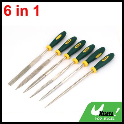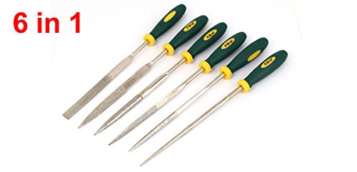 uxcell やすりセット ダイヤモンドファイル スクエア 三角 フラット グリーンプラスチックハンドル ラウンド 4mm x 160mm 6本入り
