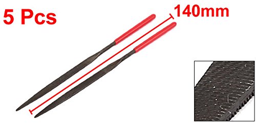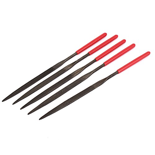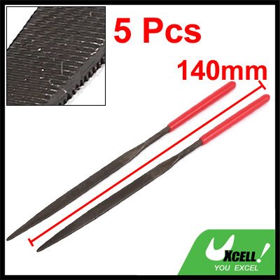 uxcell 平先ヤスリ フラットポイントファイル 赤いプラスチックハンドル ハンドツール 5本入り