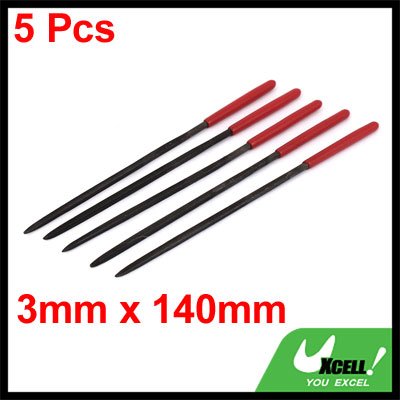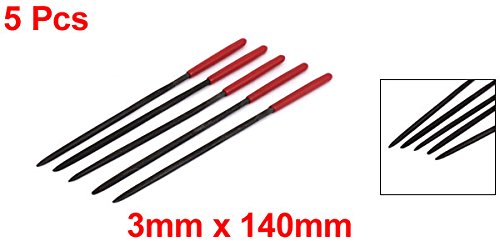 uxcell ヤスリ スクエアファイル プラスチックハンドル ハンドツール 3mm x 140mm 5本入り