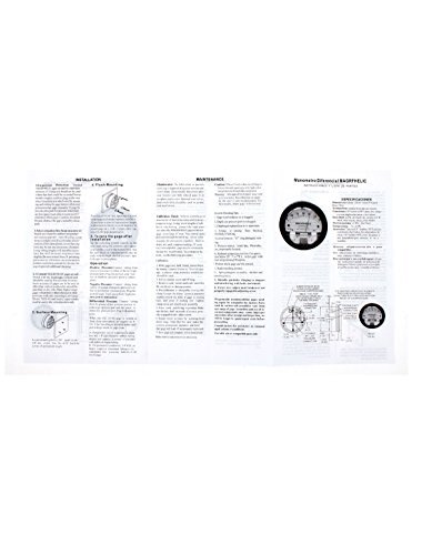 Connectors: 8.5mm/ 1/8NPT; Body Size: 12 x 5cm/ 4.7 x 2inch(D*H). Standard Gage accessories: included two 1/8 male NPT plugs for duplicate pressure taps, two 1/8 male NPT pipe thread to rubber tubing adapters, and three flush mounting adapters with screws.Finished: Baked dark gray enamel.Connectors: 1/8 NPT female high and low pressure taps, duplicated, one pair side and one pair back.Dimensions: 4-3/4inch Dia. x 2-3/16 Depth.Pressure range: 0-60Pa.Max. Pressure: 100KPa.No.: Series 2000Max. Pressure 15 PSIG (100KPA)Max. Temperature 140F (60C)Min. Temperature 20 F (-6C)