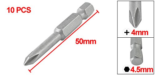 uxcell プラスドライバービット メタル製グレー シングルチップ 4mmクロスチップサイズ 長寿命 10個入り