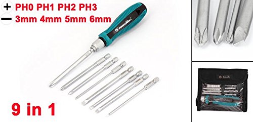 uxcell スクリュードライバー フラットヘッド クロスヘッド プラスチック製取っ手 磁気ヒント 9in1