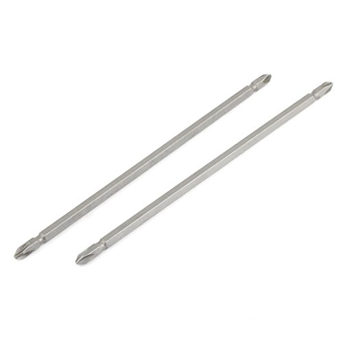 uxcell ドライバービット プラス グレー メタル デュアルエンド クロスヘッド PH2 200mm x 6mm 2個入り