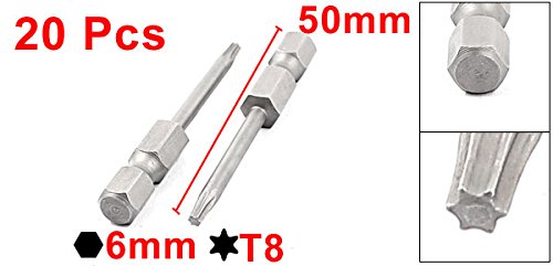 uxcell トルクスドライバービット 50mm長 6mm六角シャンク径 磁気先端 T8 20本入り