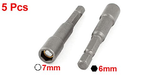 uxcell ソケットビット 六角ナット 六角ソケットナット 5個 65mm長さ 7mm 磁性 ハンドツール 六角ドライバー