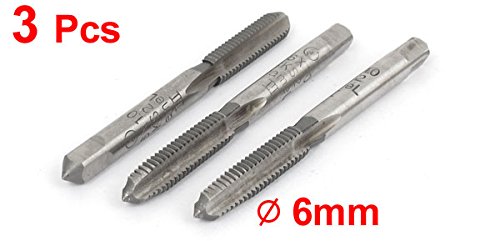 uxcell ハンドプラグタップ HSS素材 4 つのフルート グレー M6x1.0mm 3枚入り