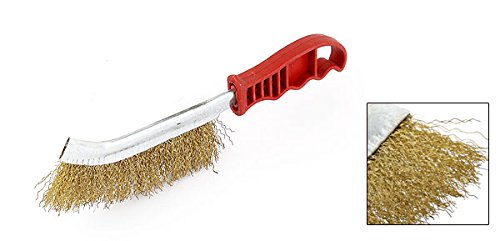 uxcell ワイヤーブラシ ハンディーブラシ 真鍮ブラシ 取っ手付き 前曲り 真鍮ワイヤー 25cm長