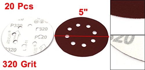 uxcell サンディングディスク 紙ヤスリ サンドペーパー 320 グリット 8 穴 125mm 直径 20枚入り