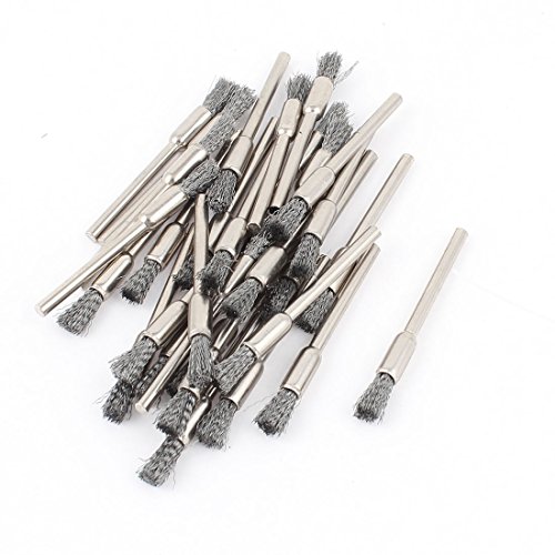 uxcell ワイヤーブラシ ペン型ワイヤーブラシ エンド型 軸付きブラシ 研磨用具 30個セット グレー