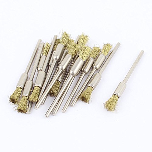 uxcell ワイヤーペン形ブラシ 研磨ツール ラウンドシャンク 2.3mm ゴールドトーン 16個入り