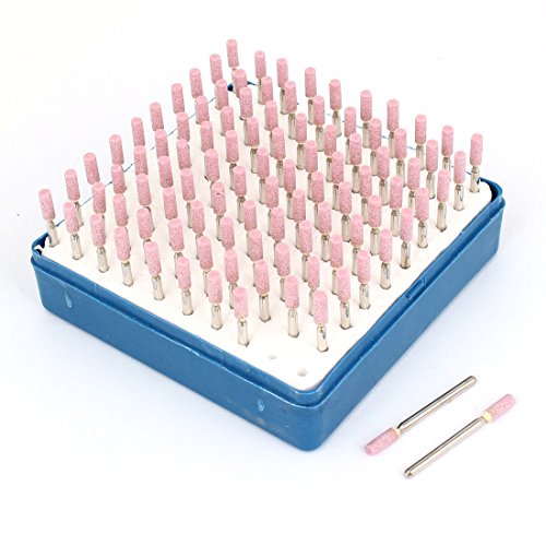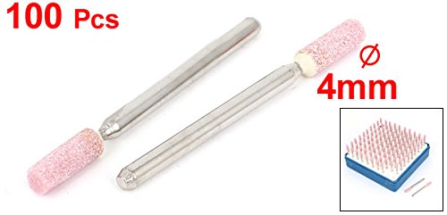 uxcell 軸付き砥石 マウントポイント 研磨材 研削ビット シリンダー セラミック ピンクセット 3mm x 4mm x 10mm 100個