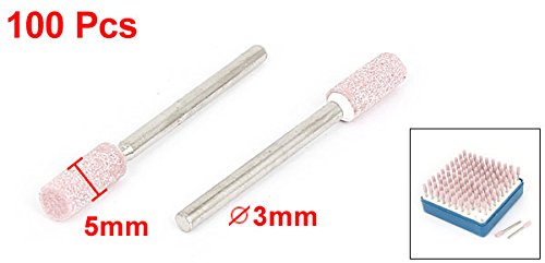 uxcell 軸付き砥石 マウントポイント 研磨材 シリンダー セラミック 研削ビット ピンクセット 3mm x 5mm x 11mm 100個