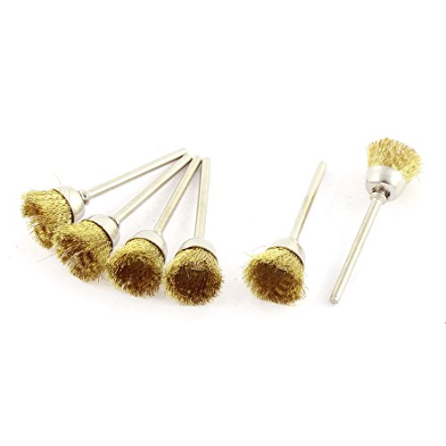 uxcell 軸付ワイヤーブラシ 研磨ブラシ 真鍮線 メタル ゴールドトーン 32g 研磨クリーニング 6本入り