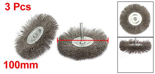uxcell クリンプワイヤーホイールブラシ 6mmx100mm 金属 スチール ポリッシャー 3個入り