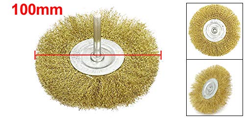 uxcell クリンプワイヤーホイールブラシ 6mmx100mm メタル 真鍮 ポリッシャー 1個入り