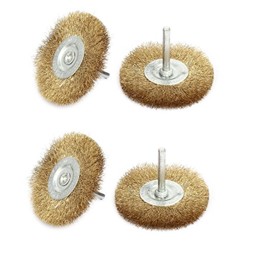 uxcell クリンプワイヤーホイールブラシ 6mmx75mm メタル スチール 真鍮メッキ 4個入り