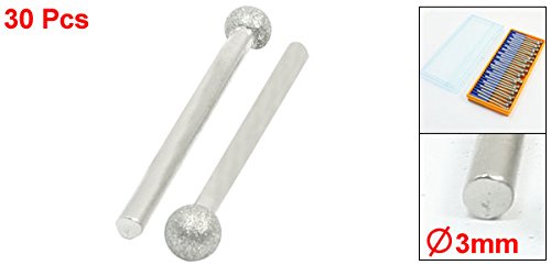 uxcell 軸付き砥石 ダイヤモンドバー ルーター用ビット 球型先端 3mm x 6mm 切削 研磨仕上げ用 30本セット
