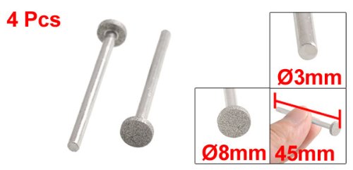 uxcell 軸付き砥石 ダイヤモンドマウントポイント ラワンドフラット 研削ビット 3mm x 8mm 4個入り