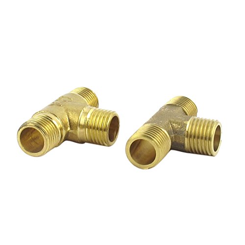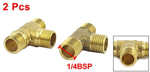 uxcell ティーコネクタ ブラス製ゴールドトーン 1 / 4BSP T形 3ウェイ コネクターアダプター 2個入り
