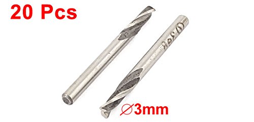 2フルート、ストレートシャンク、深い螺旋溝、3mm切削径、3mmシャンク径。