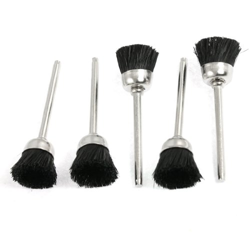 uxcell 軸付砥石 カップブラシ マンドレル 15mm径 ロータリー 馬毛 3mm軸径 5個