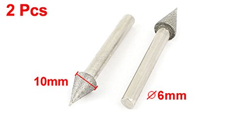 uxcell 軸付砥石 ダイヤモンドバー ダイヤモンドポイント 実装 メタル製 シルバートーン 6mm x 10mm 2個入り