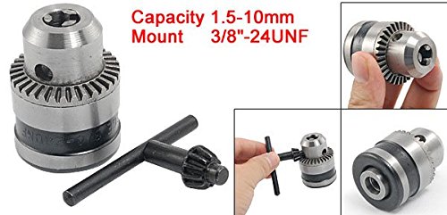 uxcell キータイプドリルチャック 電動ドリル用チャック ドリルチャック 1.5-10mm 容量 3/8"-24UNFマウント キーツール付