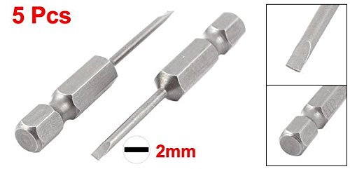uxcell マイナスドライバービット 2mmヒント幅 0.6cmヘキサシャンク径 磁気 50mm長 5個
