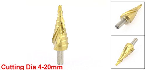 uxcell 木工ドリルビット ステップ ドリル ビット ツール 切削 シャンク スパイラル フルート ラウンド ゴールドトーン 4-20mm