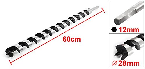 uxcell 木工ドリルビット オーガドリルビット 木材切削オーガ 六角軸 28mm ねじの先端 60cmの長さ