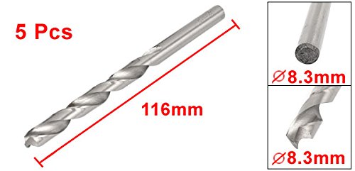 uxcell ツイストドリルビット ストレートシャンク エンドミル 154mm 5個 8.3mm径