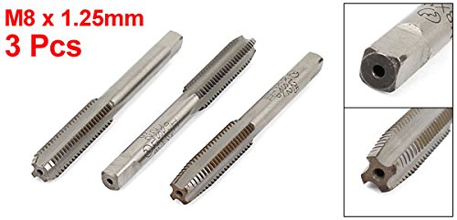 uxcell ハンドタップ ストレート 4フルート メトリック 底プラグテーパー M8x1.25mm 3個入り