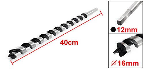 uxcell オーガードリルビット メタル製シルバートーン 16mmスレッド 40cm長さ