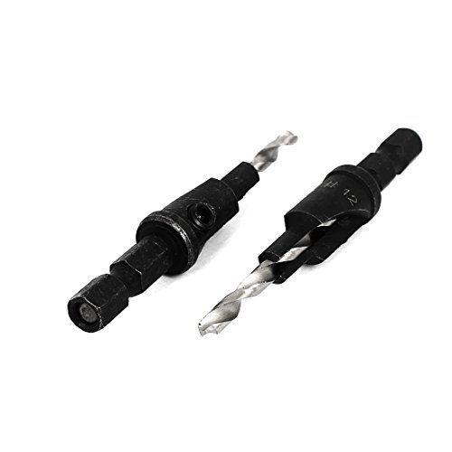 uxcell 皿取りドリルビット 六角シャン ブラック シルバートーン 皿取りドリルビット2個入り
