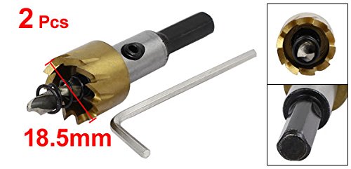 uxcell ホールソー ツイストドリルホールソー 2個入り シルバートーン ブラック ゴールドトーン HSS 18.5mm 三角シャンク