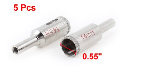 uxcell ホールソー 14mm ダイヤモンド 7mm ダイヤシャンク フォスナー ドリルビット ガラス 5個入り