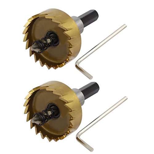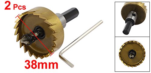 uxcell ホールソー ツイストドリルホールソー 2個入り シルバートーン ブラック ゴールドトーン HSS 38mm 三角シャンク