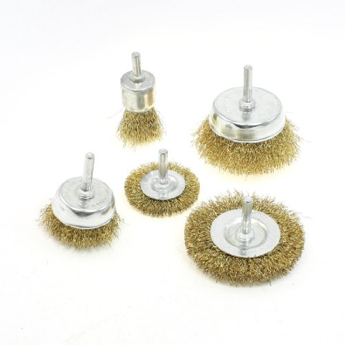 uxcell 軸付きワイヤーブラシ ワイヤホイールブラシ ポリッシュツール ブラシ製ワイヤ メタル 5in1セット