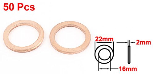 uxcell 銅ワッシャー コッパー製コッパートーン シールリング 16mmx22mmx2mm 50個入り