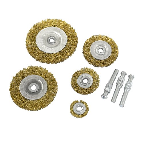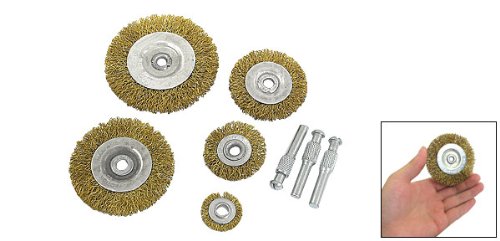 uxcell ワイヤーブラシ 研磨スチールワイヤー 6mm 直径 金属 シャンク 5個入り 鋼のワイヤー 金のトーン シルバートーン