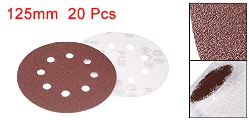uxcell サンディングディスク 紙やすり サンドペーパー 8穴あき 外径125mm 120グリット フロッキングサンドペーパー 20枚入