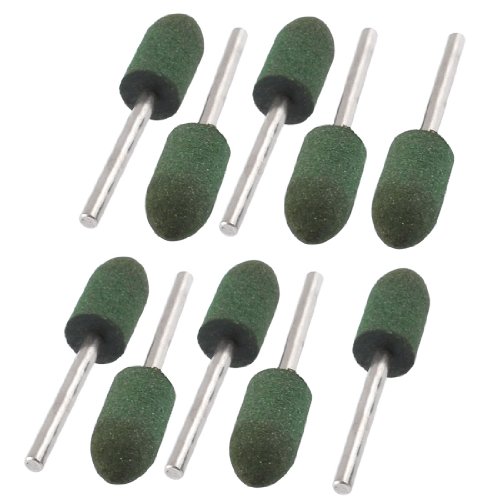 uxcell 軸付き砥石 研磨 ルーター ゴム砥石 研磨道具 10個入り グリーン 円錐チップ 研磨材 10mmx20mmx3mm