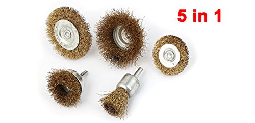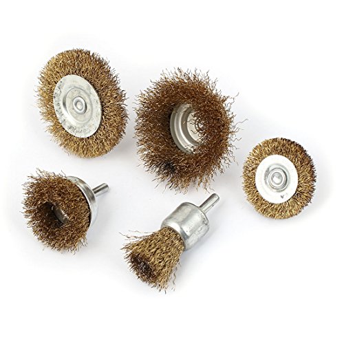 uxcell ワイヤー ホイール ブラシ5 in 1 セット スチール ポリッシュ グリンダー クリーニング ゴールド トーン