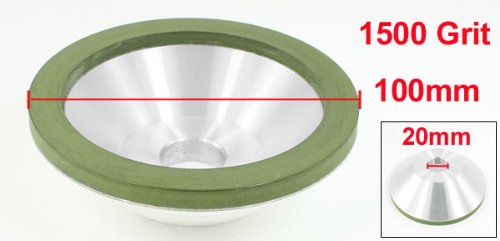 100mm外径、20mm取り付け穴、10mmx 3mmのリム、32mm全体の深さ、1500グリット、75%の濃度、レジンボンド、カップ型のフレア.