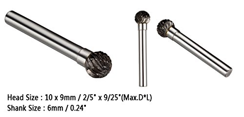 uxcell ダブルカット タングステン カーバイド ロータリーファイル10mm ヘッド6mm シャンクボール形状