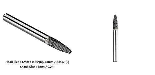 uxcell ダブルカット タングステン カーバイド ロータリーファイル6mmヘッド6mmシャンク テーパー形状