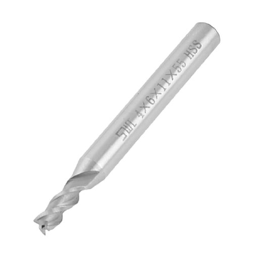 uxcell フライス エンドミル ストレートシャンク 3フルート 4mm x 6mm x 11mm x 55mm メタル