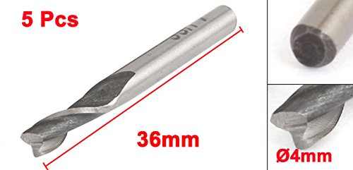 uxcell エンドミル 4mm掘削径 ストレートシャンク 金属 グレー 2枚刃